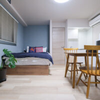 2LDKの間取りに家族・DINKsが住むことを想定したプラン。ハイグレードかつシンプルな内装の中で、モザイクタイルのアクセントが映える。1部屋に5カ所のコンセントやUSBジャックを設置し、またWi-Fiルーター置き場を造作するなど、現代のライフスタイルに合わせた設備を備えている。