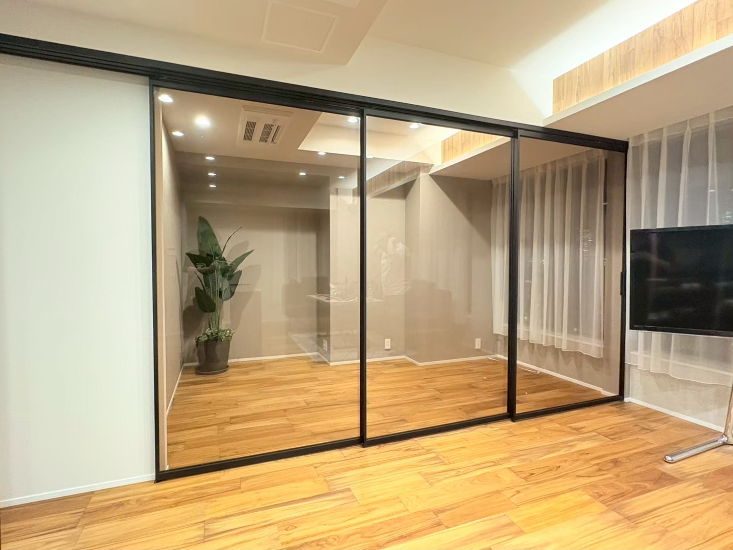 ガラスパーテーションが空間同士を緩やかにつなぎ、視線の抜けと自然光の広がりを生み出すことで、住まい全体に心地よい開放感をもたらしています。